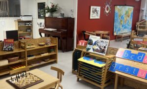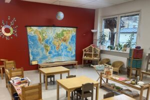 Montessorirum – Inrett med klassiskt Montessorimaterial som uppmuntrar självständigt lärande inom språk, matematik, naturvetenskap och praktiskt vardagsliv. Utöver dessa finns ett bibliotek med ett stort urval av barnböcker som används både i undervisningen och i barnens fria läsning.